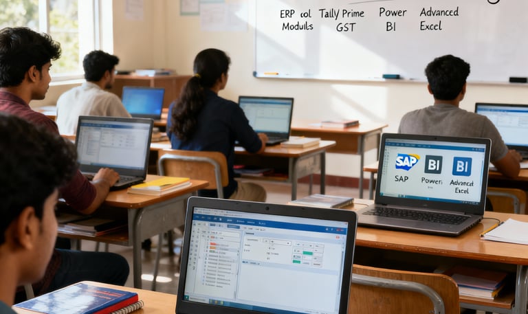 ERP & Business Tools - SAP (FICO, MM, SD, PP), Tally Prime with GST, Power BI, Advanced Excel.
