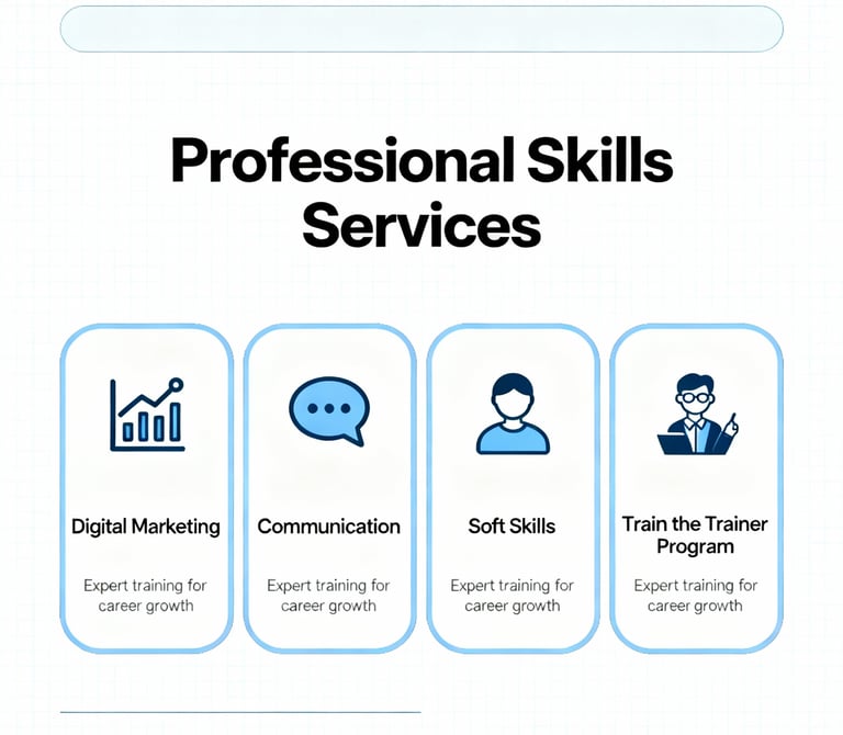 Digital Marketing, Communication & Soft Skills, Train the Trainer Program.